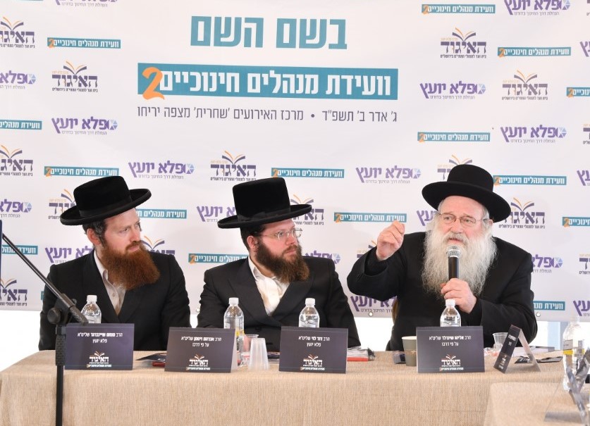 The Second Executives’ Educational Conference by Pele Yoetz Center took place last week in the Shacharit Hall in Mitzpeh Yericho. The event was attended by 30 menahalim of Talmudei Torah in Yerushalayim and took place under the auspices of Hagaon Harav Dovid Levy shlit”a, Nasi of Pele Yoetz Center; Rabbi Avraham Vitman, director of Al Pi Darko; and the directors and board members of Pele Yoetz Center.